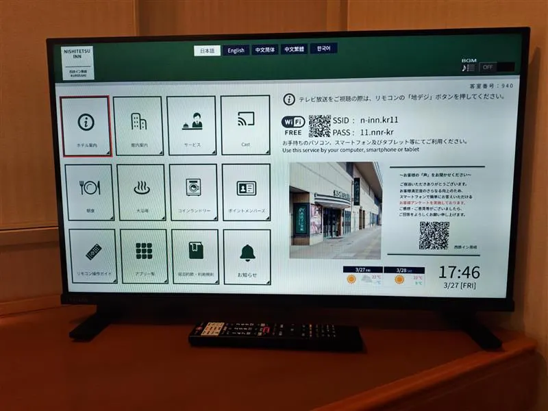 ที่นิชิเท็ตสึ อินน์ คุโรซากิ เราได้ติดตั้งสมาร์ททีวีในห้องพักทุกห้อง
