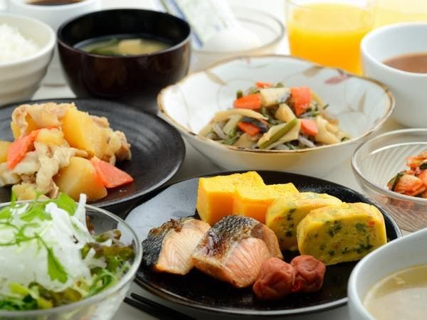 <เวลาให้บริการ> 6:00~9:00 บุฟเฟ่ต์อาหารญี่ปุ่นและตะวันตกที่รวมวัตถุดิบตามฤดูกาลจากอิวาเตะ เริ่มต้นวันใหม่อย่างสดใสด้วยเมนูอาหารเช้าเพื่อสุขภาพ ※ผู้ใหญ่: 1000 เยน เด็กประถม: 800 เยน