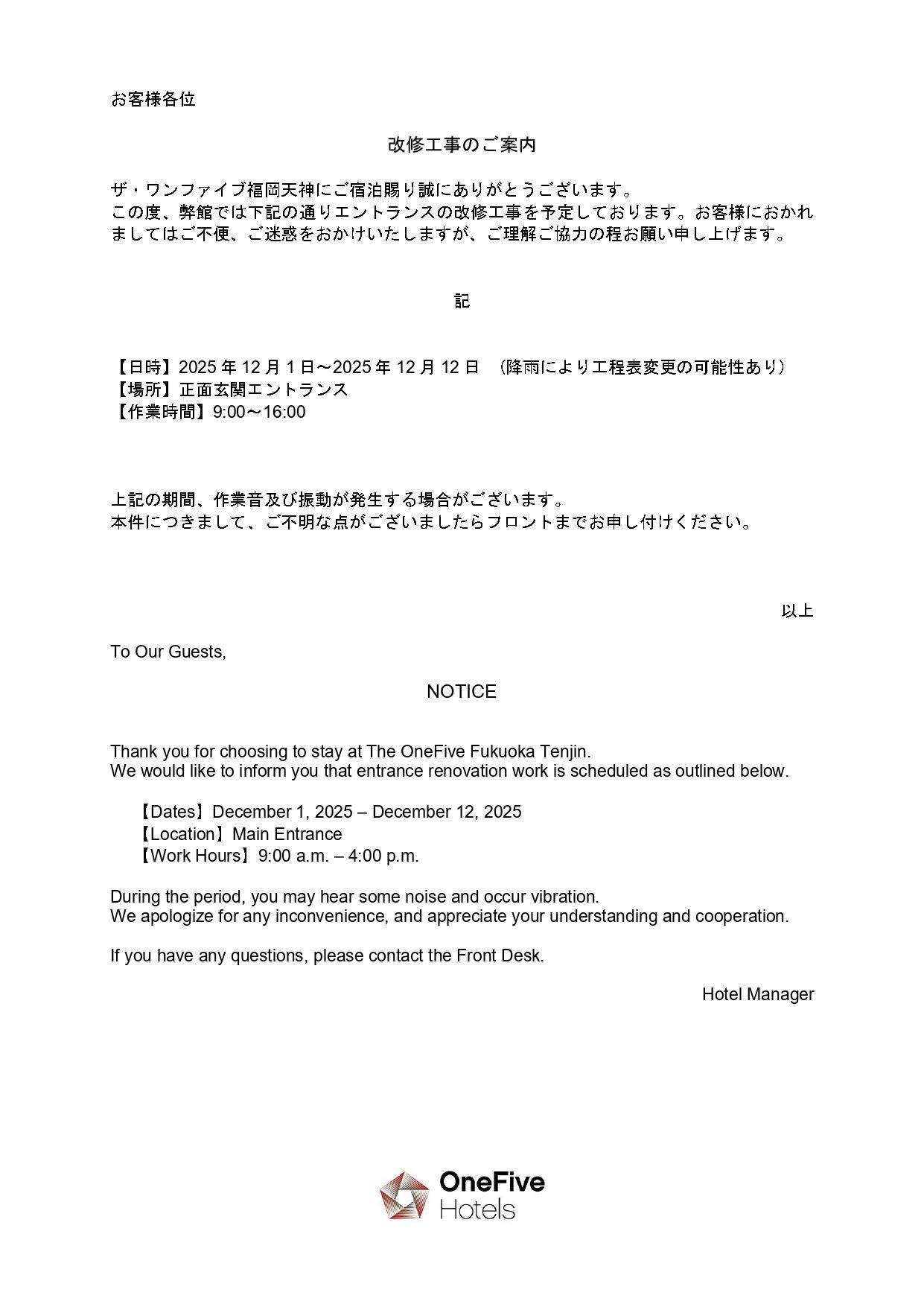 - The OneFive Fukuoka Tenjin