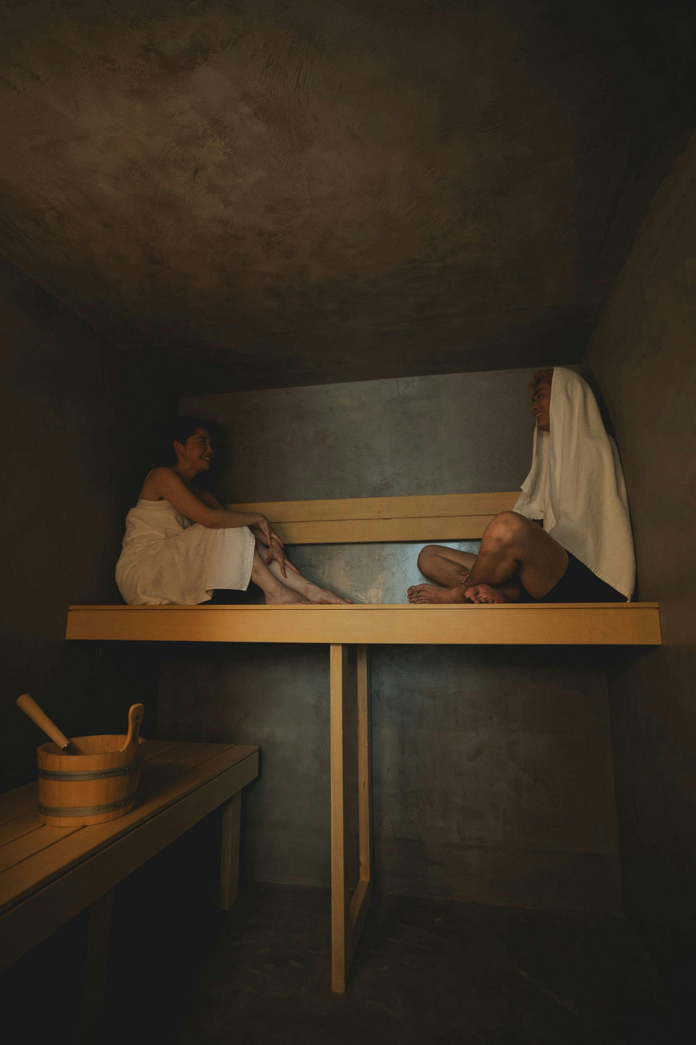 ห้องพักพร้อมซาวน่าส่วนตัว สามารถทำโลว์ริวได้ด้วยซาวน่าเตาไฟฟ้า TYLO! มีอ่างน้ำเย็นและเก้าอี้พักผ่อนให้บริการ เป็นแผนที่แนะนำสำหรับคู่รักที่ชื่นชอบซาวน่า