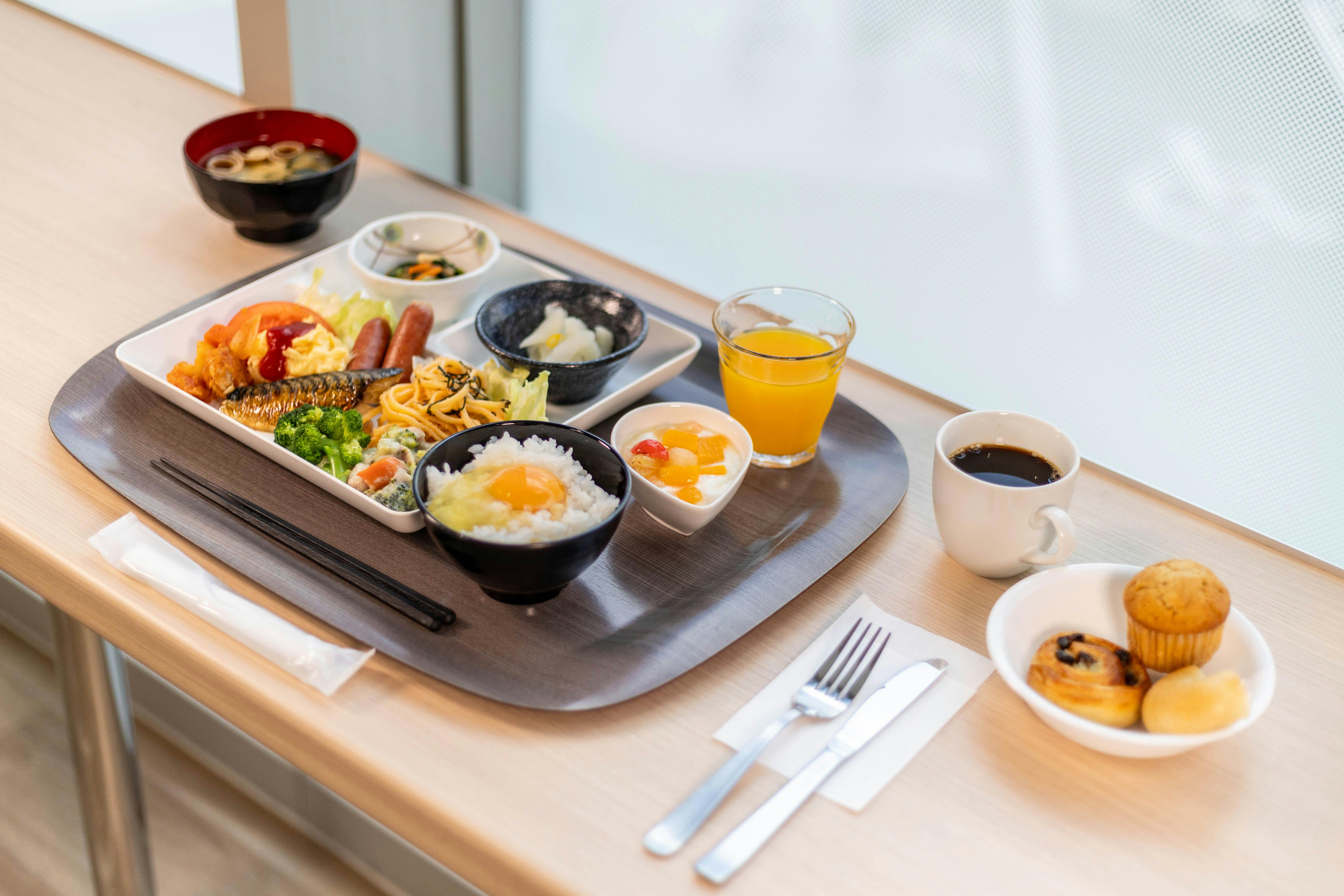 ห้องอาหารเช้า: ชั้น 2 ของโรงแรม เวลา 7:00 - 9:30 (ปิดรับออเดอร์เวลา 9:00) บุฟเฟ่ต์อาหารญี่ปุ่นและตะวันตก ราคา: ผู้ใหญ่ 1,500 เยน (รวมภาษี) เด็ก 800 เยน (รวมภาษี) สำหรับเด็กอายุ 4-12 ปี