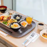 | อาหารเช้า | ห้องอาหารเช้า: ชั้น 2 ของโรงแรม เวลา 7:00 - 9:30 (ปิดรับออเดอร์เวลา 9:00) บุฟเฟ่ต์อาหารญี่ปุ่นและตะวันตก ราคา: ผู้ใหญ่ 1,500 เยน (รวมภาษี) เด็ก 800 เยน (รวมภาษี) สำหรับเด็กอายุ 4-12 ปี |