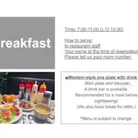 - ไม่มีที่จอดรถหน้าโรงแรมสามารถใช้บริการได้ในราคา 3,000 เยนต่อคืน
