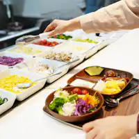 บุฟเฟ่ต์อาหารอิตาเลียนจากวัตถุดิบท้องถิ่น สำหรับผู้เข้าพัก: ผู้ใหญ่ 2,310 เยน / นักเรียนประถม 2,090 เยน สำหรับผู้มาเยือน: 2,750 เยน