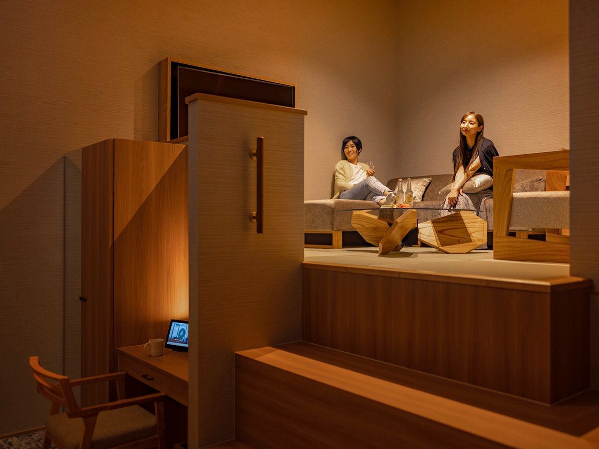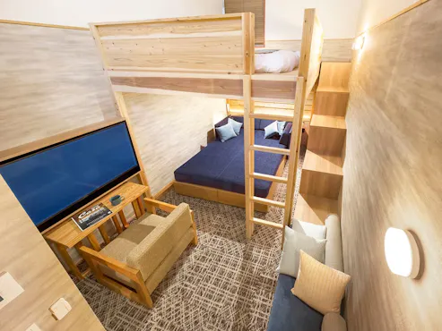 runarunaru 16/2/2026The Room had a unique design, which made the stay enjoyable, although having the bathroom and toilet on the same staircase level as the living area was slightly inconvenient. The loungewear provided was very comfortable. The wide steps of the staircase inside the Room made going up and down a bit challenging. It was great to be able to project your smartphone screen onto the projector for entertainment.