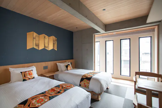 ด้วยทำเลที่ตั้งใกล้กับจุดหมายปลายทางสุดท้ายของโทไคโด โกจูซันสึกิ เราได้เลือกธีม 'ที่พัก' ในเมืองสถานี ห้องพักที่หันหน้าออกด้านนอกมีหน้าต่างขนาดใหญ่ที่สุดเท่าที่จะเป็นไปได้ สร้างบรรยากาศการนั่งริมหน้าต่างชมวิวเมืองเกียวโต ห้องพักส่วนกลางถูกออกแบบให้เป็นพื้นที่แยกต่างหาก พร้อมสวนเล็กและลานกลาง ให้คุณได้เพลิดเพลินกับทิวทัศน์ของห้องเล็กและห้องใหญ่ที่อยู่ติดกัน