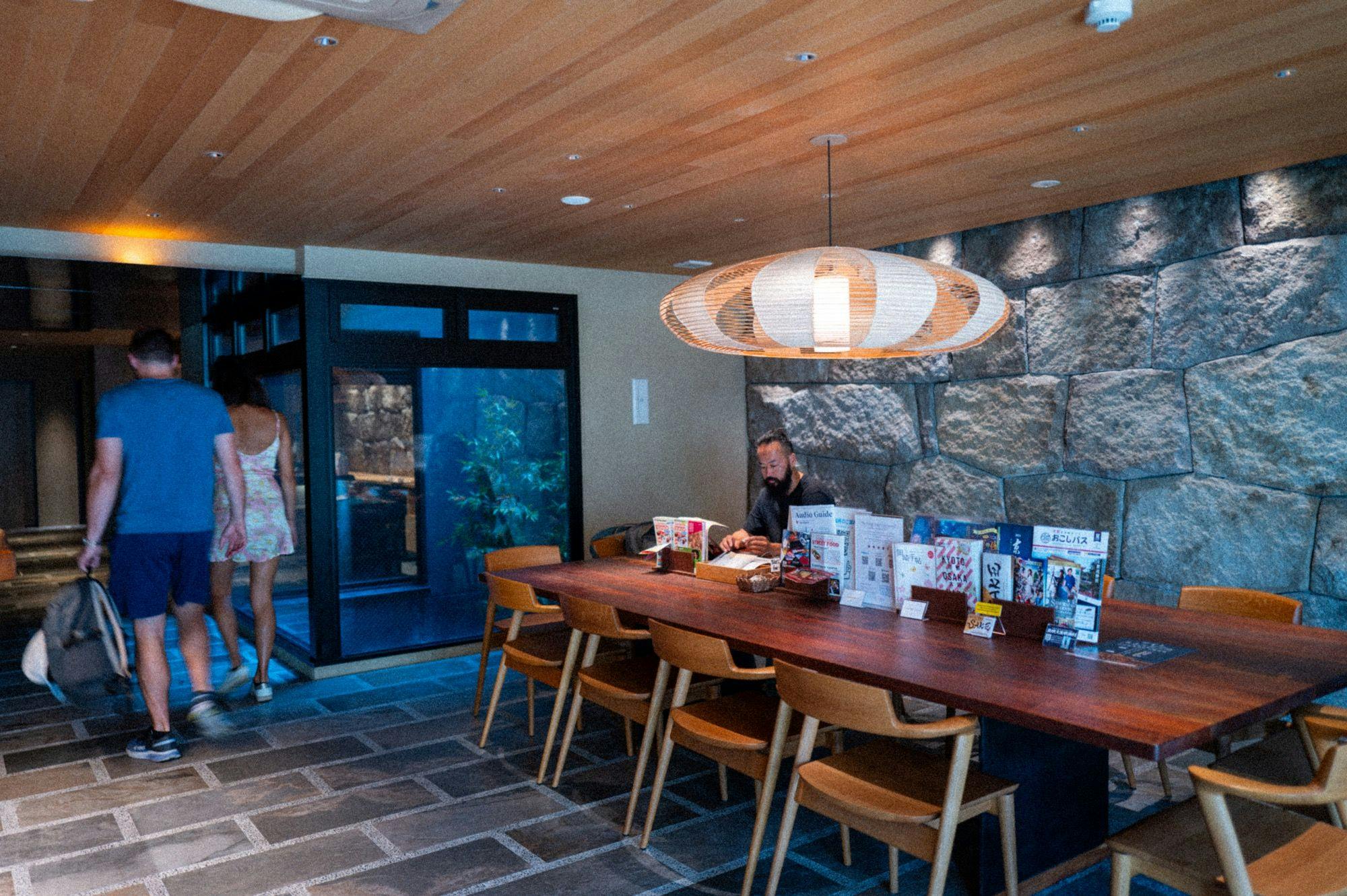 วัสดุที่ใช้ในอาคารประกอบด้วยไม้และคอนกรีต ผ้าและกระเบื้อง ซึ่งเป็นการผสมผสานระหว่างความนุ่มนวลและความแข็งแกร่ง ความดั้งเดิมและความทันสมัย สัมผัส "เกียวโตใหม่" และเพลิดเพลินกับทิวทัศน์ตามฤดูกาล