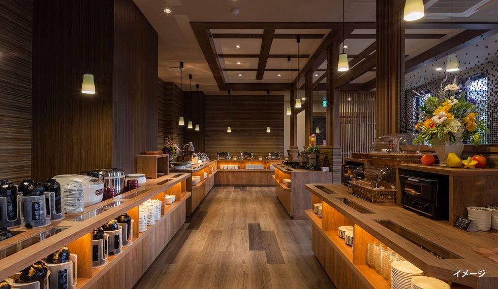 ■บุฟเฟ่ต์อาหารเช้าแบบญี่ปุ่นและตะวันตก ■สถานที่รับประทานอาหารเช้า ⇒ ชั้น 1 ของโรงแรม ร้านอาหาร "คะโซ" ■เวลาให้บริการ ⇒ 6:30~9:00 ■ราคาต่อท่าน 1,800 เยน เด็กประถม 1,000 เยน เด็กเล็กฟรี