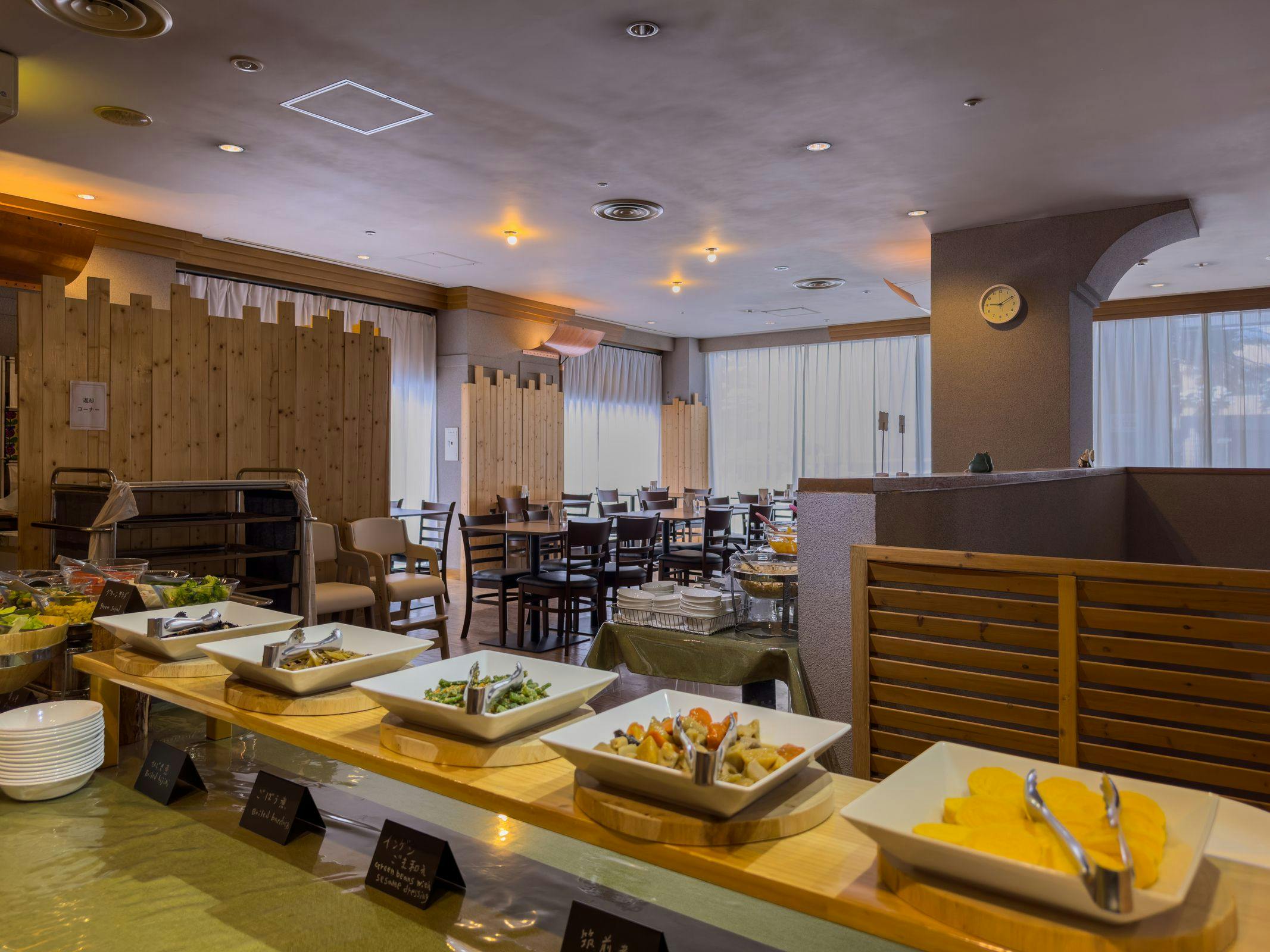 | อาหารเช้า | บุฟเฟ่ต์ญี่ปุ่นและตะวันตก 1,500 เยน รวมภาษี |