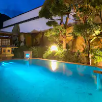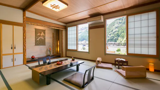ที่พักแห่งนี้คุณสามารถเพลิดเพลินกับน้ำพุร้อนที่ไหลผ่านและสำรวจน้ำพุร้อน 15 แห่งที่แตกต่างกัน น้ำพุร้อนอัลคาไลน์แบบง่ายๆ ถูกกล่าวว่ามีประสิทธิภาพต่อโรคต่างๆ ทุกห้องมีการติดตั้ง Wi-Fi ทำให้คุณสามารถเพลิดเพลินกับน้ำพุร้อนได้อย่างอิสระ อาหารที่จัดเตรียมโดยหัวหน้าเชฟไม่เพียงแต่อร่อยแต่ยังสวยงามจนคุณไม่อยากกิน นอกจากนี้คุณยังสามารถสัมผัสความรู้สึกเหมือนอยู่ในธรรมชาติขณะมองดูดาวจากอ่างอาบน้ำกลางแจ้ง