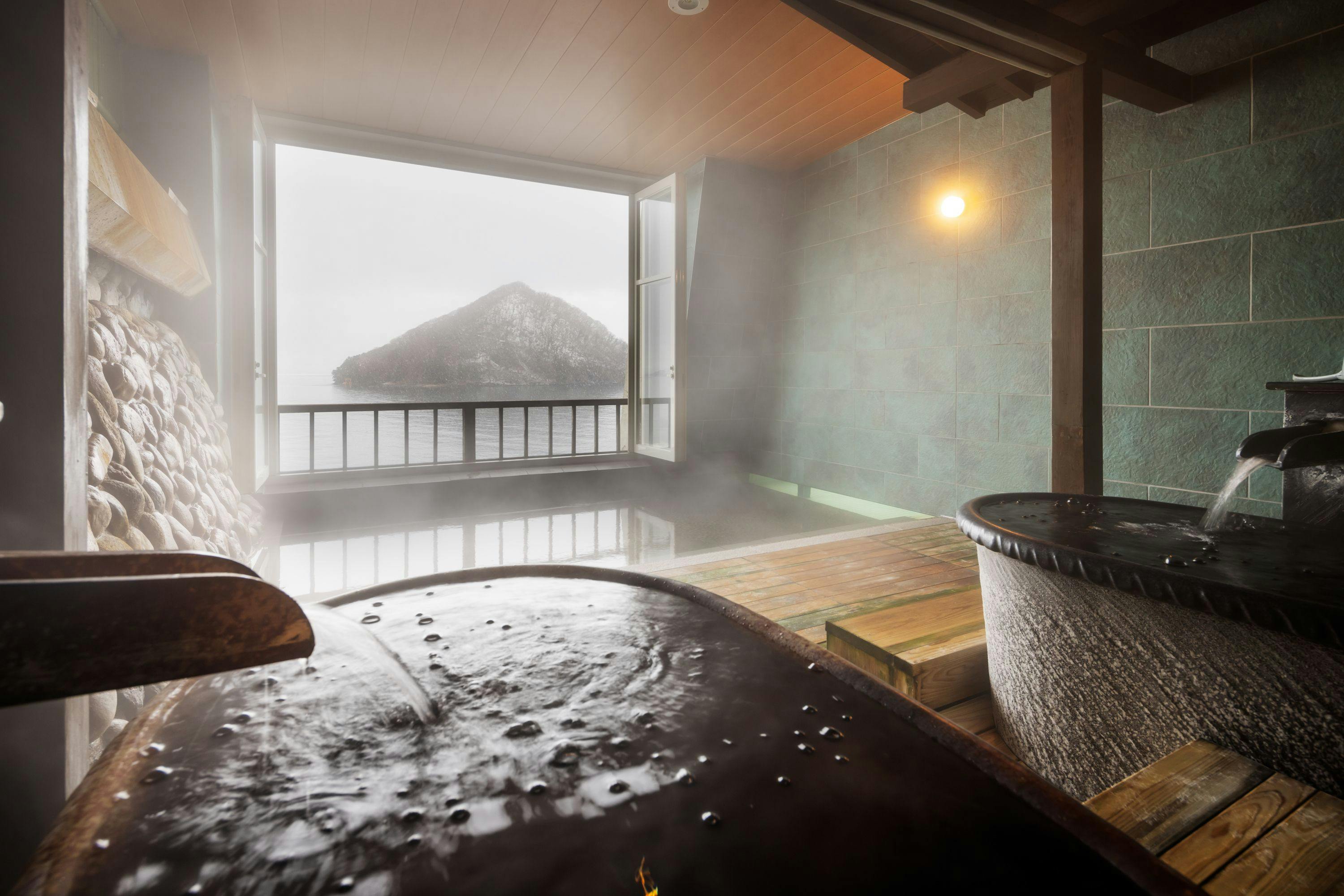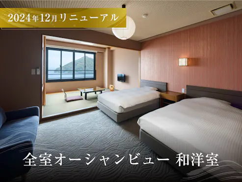 โรงแรมของเราเป็นเรียวกังเพียงแห่งเดียวในน้ำพุร้อนอาซามุชิที่ตั้งอยู่ติดกับชายฝั่ง ด้านล่างเป็นอ่าวมุทสึที่กว้างใหญ่ คุณสามารถเพลิดเพลินกับทิวทัศน์ธรรมชาติที่เปลี่ยนแปลงไปตามฤดูกาล เมื่อก้าวเข้าสู่ล็อบบี้ อ่าวมุทสึก็ปรากฏขึ้นเหมือนภาพพาโนรามา และทะเลดูเหมือนจะอยู่ใกล้แค่เอื้อม เพลิดเพลินกับลมทะเลที่สดชื่นและฟังเสียงคลื่นในขณะที่สร้างความทรงจำในการเดินทางของคุณ