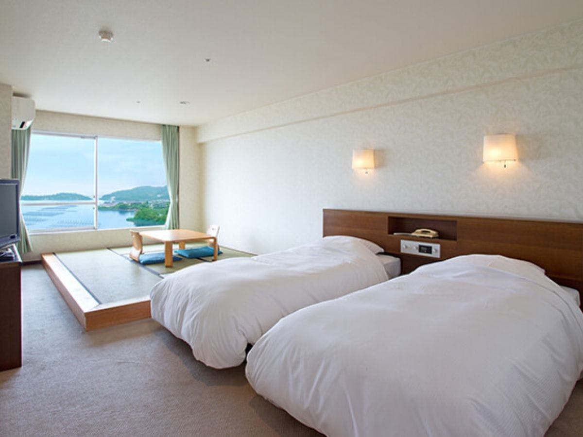 จังหวัดชิซูโอกะ/น้ำพุร้อนซันกะบิรีสอร์ทสำหรับครอบครัวที่สามารถเพลิดเพลินกับวิวทะเลสาบฮามานะ ออนเซ็นกลางแจ้ง ซาวน่า สระว่ายน้ำ และบุฟเฟ่ต์อาหารหลากหลาย