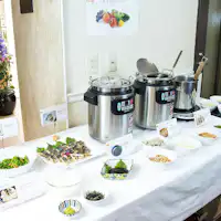 เพลิดเพลินกับบุฟเฟ่ต์ประมาณ 40 รายการทั้งอาหารญี่ปุ่นและตะวันตกในร้านอาหารสีขาวสะอาด เมนูที่หลากหลายตั้งแต่ผักสด อาหารจานหลักที่อิ่มอร่อย ไปจนถึงอาหารญี่ปุ่นและตะวันตกที่ดีต่อสุขภาพ ตอบสนองทุกความชอบ เราให้บริการอาหารที่เหมาะสมกับความต้องการของลูกค้าตั้งแต่มื้อเช้าจนถึงมื้อเย็น