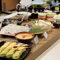 | อาหารเช้า | คุณสามารถเพลิดเพลินกับอาหารเช้าแบบบุฟเฟ่ต์สไตล์ญี่ปุ่นและตะวันตก เวลาเปิดทำการ: 7:00~9:30 สถานที่: ร้านอาหารชั้น 2 ราคา: 1,600 เยน (รวมภาษี) ※ ครึ่งราคาสำหรับนักเรียนประถม (ฟรีสำหรับเด็กก่อนวัยเรียน) |