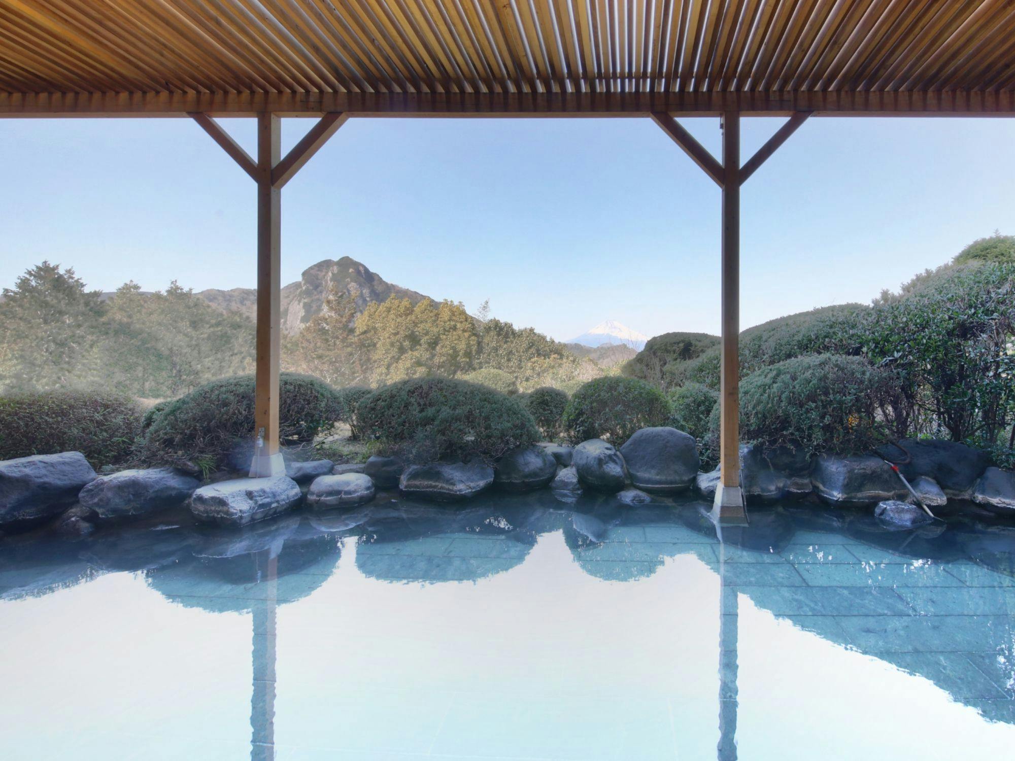ที่พักน้ำพุร้อนที่สามารถเพลิดเพลินกับทัศนียภาพที่ยอดเยี่ยมของภูเขาฟูจิจากบ่อน้ำพุร้อนกลางแจ้งที่กว้างขวาง