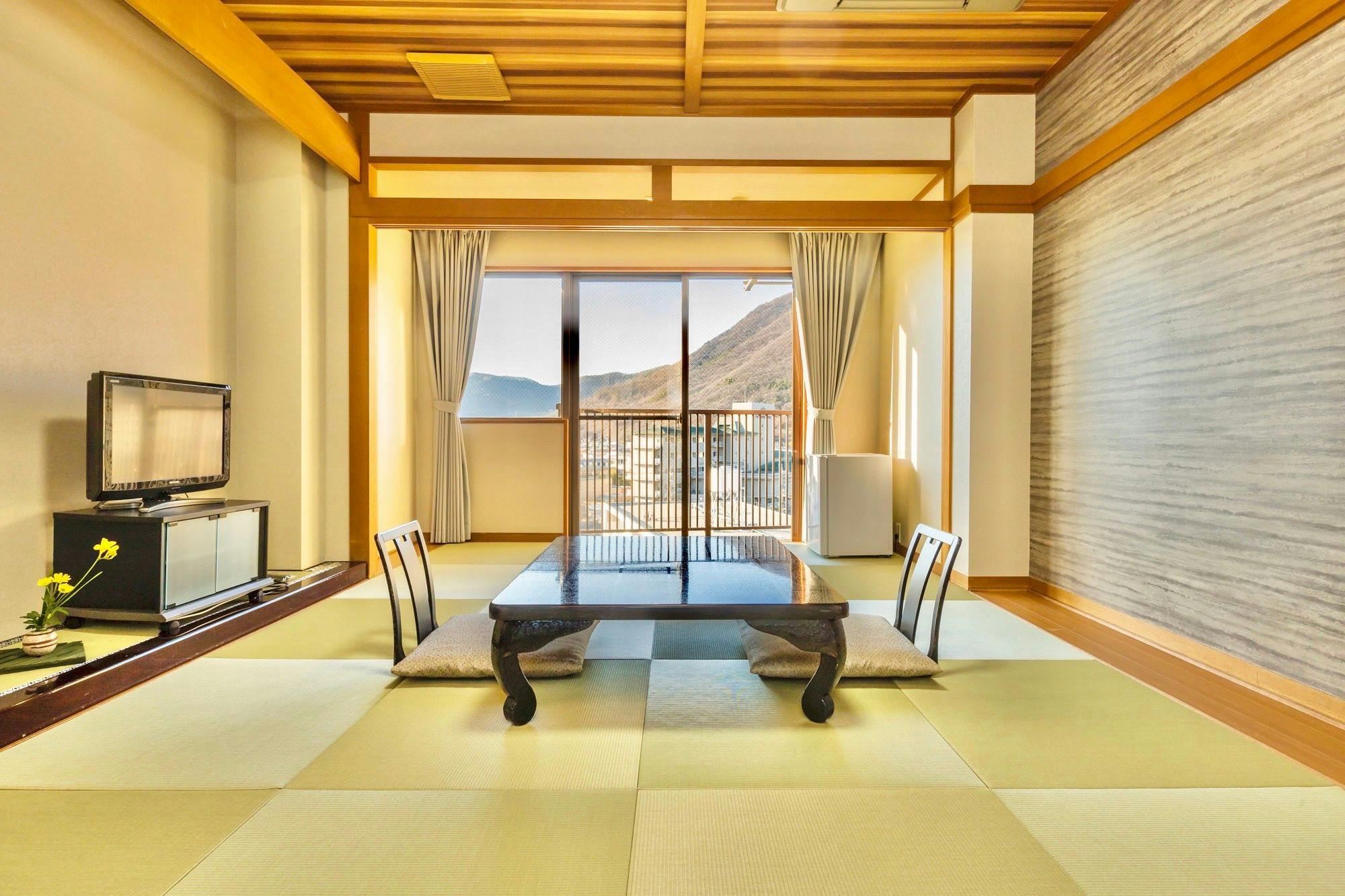 ที่พักน้ำพุร้อนพร้อมอาหารไคเซกิแบบโคชูที่มีชื่อเสียง เพลิดเพลินกับวิวภูเขา 3 อันดับแรกของญี่ปุ่นและไวน์จากเลานจ์ชมวิว