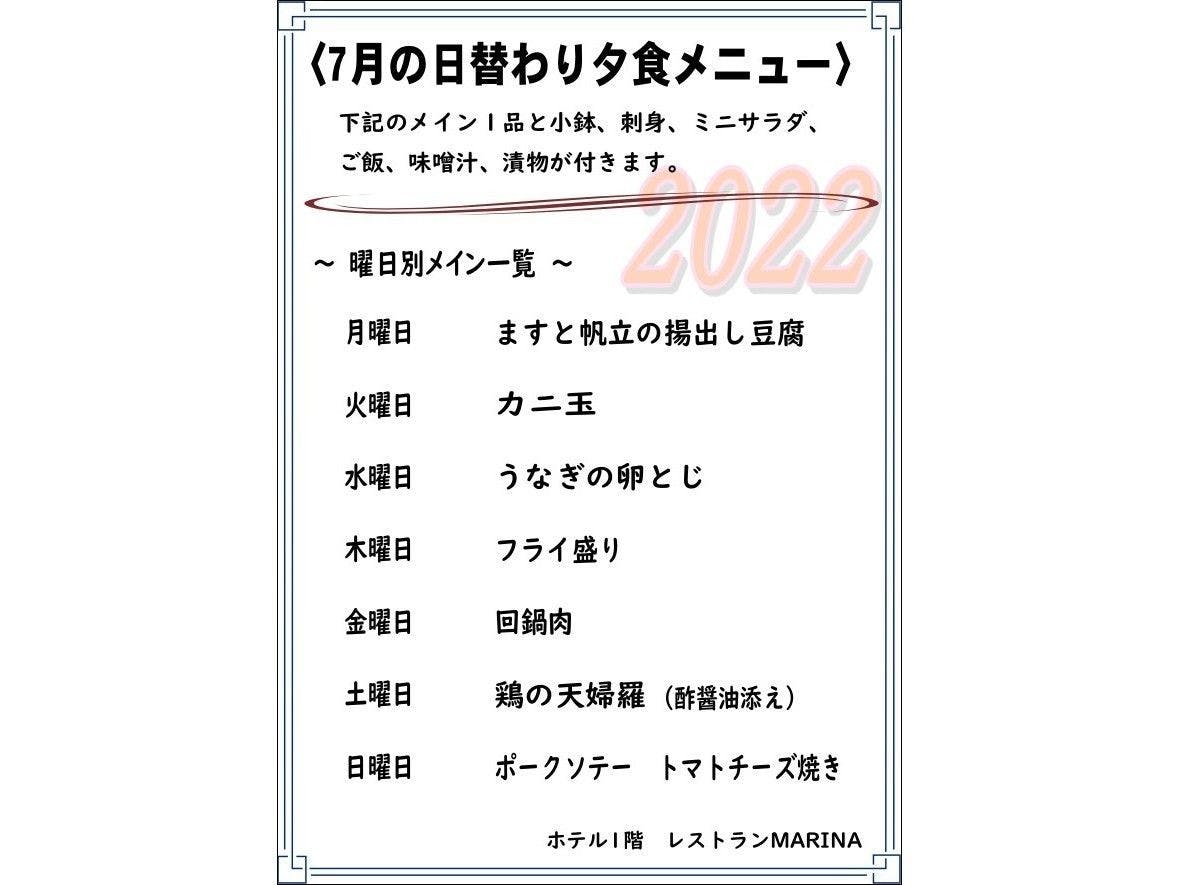 | อาหารเช้า | อาหารเช้าที่ร้านอาหาร (บุฟเฟ่ต์) ※ อาจมีการเปลี่ยนแปลงเป็นเมนูชุดตามความเหมาะสม ขออภัยในความไม่สะดวก |