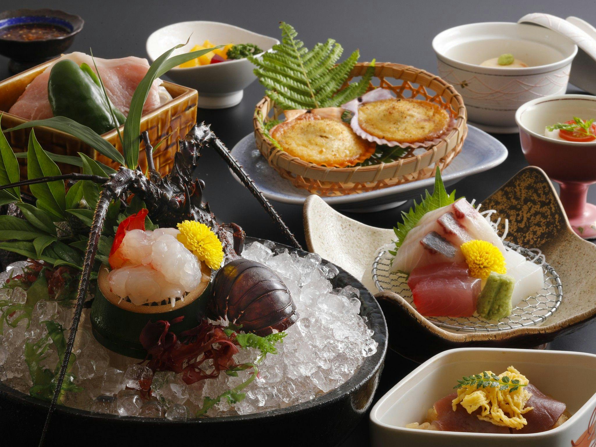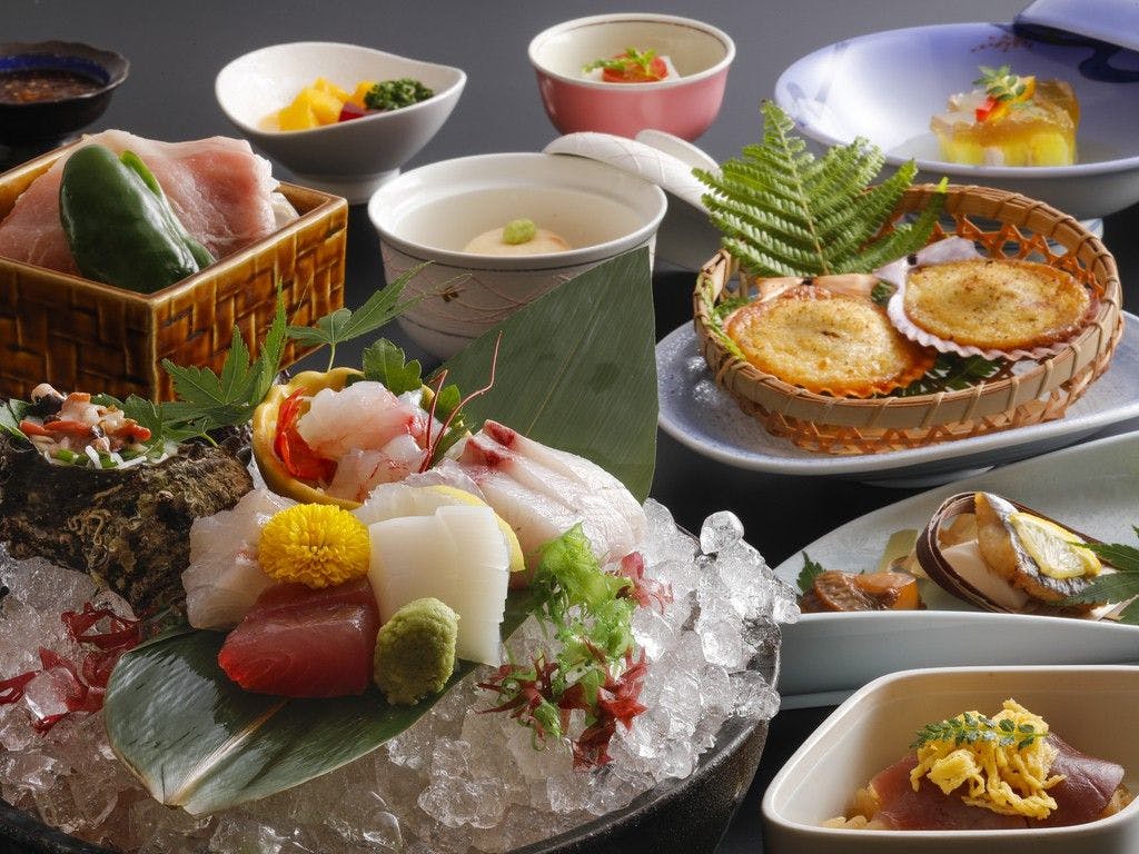 กุ้งอิเสะ, หอยเป๋าฮื้อ, เนื้อมัตสึซากะ และในฤดูหนาวมีปลาปักเป้าอาโนริ, หอยนางรมมะโตยะ อิเสะชิมะเป็นขุมทรัพย์แห่งความอุดมสมบูรณ์ของทะเลและภูเขา นี่คือข้อมูลเกี่ยวกับคอร์สอาหารที่เชฟปรุงอย่างพิถีพิถันและแผนพิเศษตามฤดูกาลที่ใช้วัตถุดิบสดใหม่ ขอให้ท่านเพลิดเพลินกับช่วงเวลาแห่งความสุข