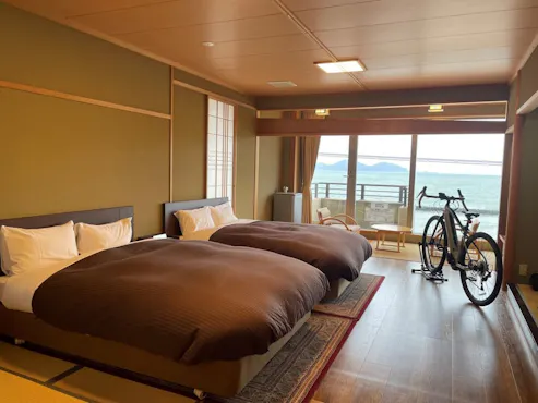 I was looking for an Accommodation in places like Obama and Tsuruga to enjoy Wakasa fugu. Many places didn’t have great Review ratings, so I was a bit worried, but I made a Reservation at “Shikisai no Yado Hanatsubaki” because it was highly rated. From the outside, it isn’t a new-looking place, but the inside was very clean, and it was quiet and relaxing—perhaps because it wasn’t too crowded.The Room we were shown to was a Japanese-style room, and I still remember how moved I felt by the view of Wakasa Bay from the window. We could enjoy the same view from the large public bath on the top floor.Dinner was a full fugu course as mentioned above—from appetizers to finishing rice porridge—and everything was delicious. The only disappointment was that although the staff carefully brought each dish, there was no explanation at all about what each dish was or how to eat it. Since many people from Tokyo don’t often eat fugu, we may not know much about it. If they had explained the dish names and how to enjoy them, I think we could have appreciated it even more.That said, we truly enjoyed the fugu and were very satisfied. Breakfast also featured local items such as dried flatfish, which were delicious as well.Overall, I thought it was a wonderful Ryokan. I would definitely like to return. Thank you for such a great memory.