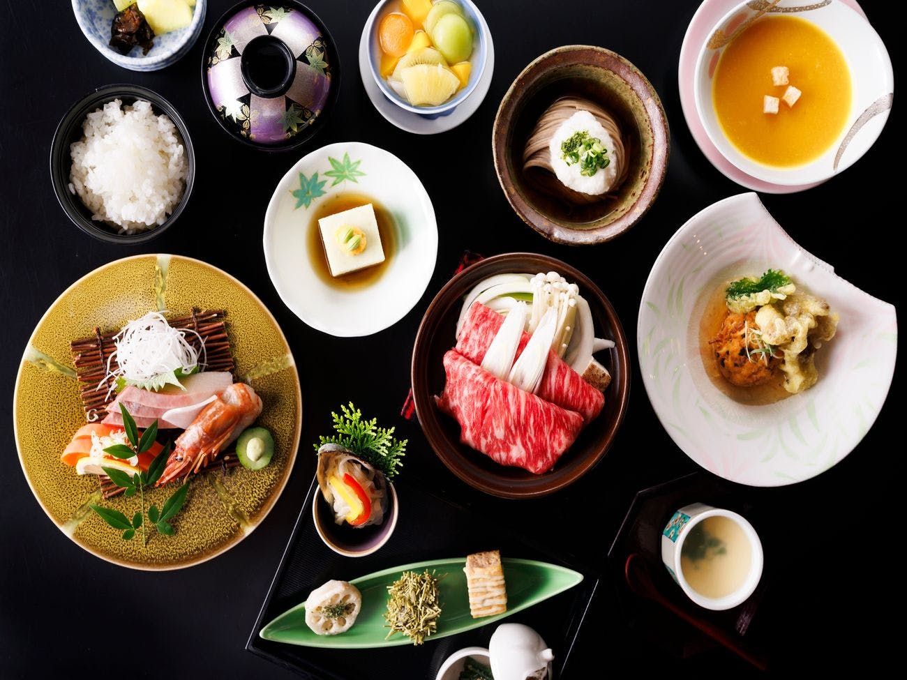 จังหวัดนากาโน่/ชิคุมะชุดอาหารไคเซกิเนื้อวากิวชินชู และอ่างอาบน้ำกลางแจ้งพร้อมวิวพาโนรามาของย่านน้ำพุร้อนทั้งหมด
