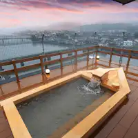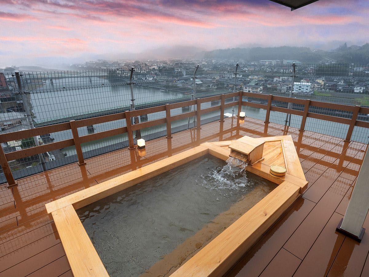 ・เวลาทำการ: 07:30~22:00 ・น้ำพุร้อน: มี ・ไหลผ่านตลอด: ไม่มี ・น้ำพุร้อนขุ่น: ไม่มี ・ข้อควรทราบ: แหล่งที่มา 100% (เพิ่มความร้อน) เช่าเหมาลำ: 50 นาที 1134 เยน ต้องทำการจอง ◆ จุดเด่น: อ่างอาบน้ำกลางแจ้งไม้สนฮิโนกิที่ระดับความสูง 50 เมตร มีชื่อเสียงในฐานะน้ำพุร้อนเพื่อความงาม ◆ อุปกรณ์ในห้องอาบน้ำ: แชมพู, ครีมนวดผม, สบู่เหลว, สบู่ก้อน, ผ้าขนหนู, เครื่องสำอางค์ต่างๆ, ไดร์เป่าผม