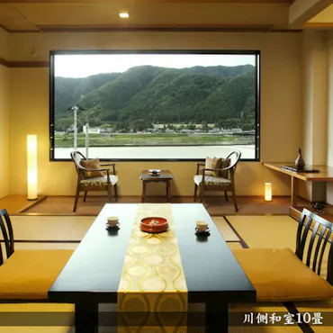 ที่พักที่ล้อมรอบด้วยภูเขาและแม่น้ำ มีความภาคภูมิใจในบริการที่อบอุ่นเหมือนบ้านและอาหารที่ทำด้วยมือตามฤดูกาล เราให้บริการอาหารที่เน้นการบริโภคในท้องถิ่น รวมถึงข้าวโคชิฮิคาริที่ใช้สารเคมีน้อยและผักตามฤดูกาลจากเกษตรกรในพื้นที่ รวมถึงบ๊วยดองที่ทำเอง จากห้องพักที่หันหน้าไปทางแม่น้ำ คุณสามารถชมวิวแม่น้ำอากาโนะและภูเขาโฮชูในท้องถิ่น เพลิดเพลินกับทิวทัศน์ที่เปลี่ยนแปลงตามฤดูกาล