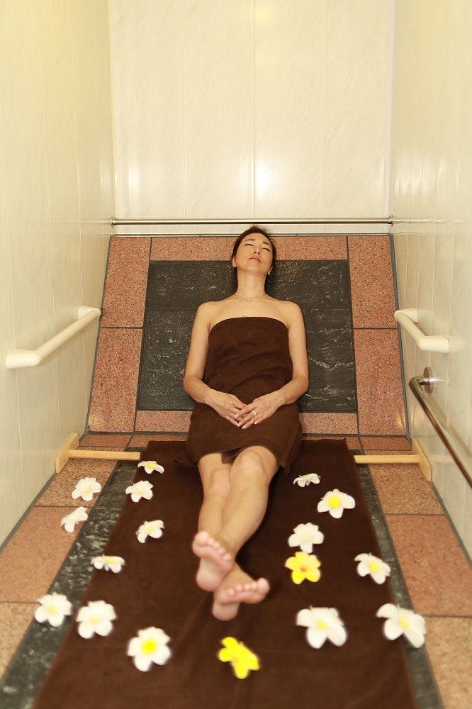 พื้นที่พักผ่อนสไตล์รีสอร์ทเอเชีย พร้อมสิ่งอำนวยความสะดวกครบครัน เช่น อ่างอาบน้ำกลางแจ้ง ซาวน่า สระว่ายน้ำในร่ม และห้องอบหินร้อน ที่พักแบบให้เช่าทั้งหลังสำหรับ 1 กลุ่มต่อวัน มี 5 ห้องนอน ห้องนั่งเล่น และห้องรับประทานอาหาร