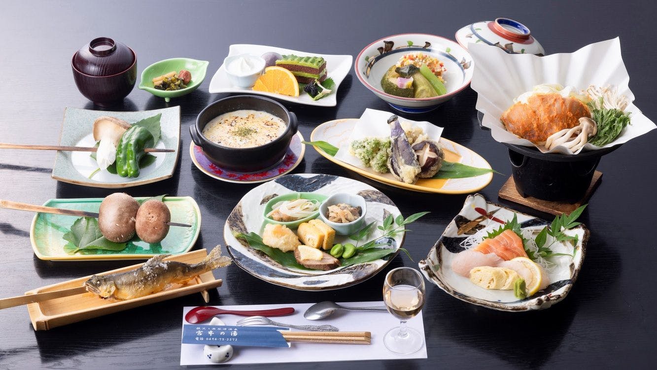 นี่คืออาหารไคเซกิที่ใช้วัตถุดิบจากภูเขาและชนบทที่เป็นเอกลักษณ์ของชิชิบุ รวมถึงผักสดปลอดสารพิษที่เก็บเกี่ยวจากฟาร์มชิชิบุฟุรุซาโตะมูระ