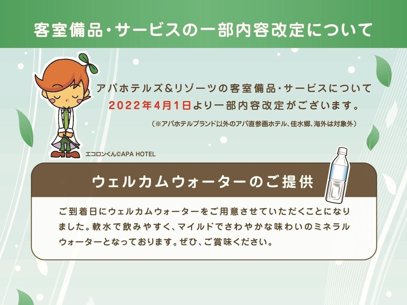 เนื่องจากการปรับปรุงใหม่ โรงแรมอาป้า<โคมัตสึแกรนด์>จะปิดให้บริการชั่วคราว รวมถึงการหยุดให้บริการของอาป้าสปาโคมัตสึ