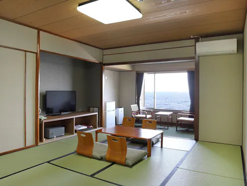 Yahoo!トラベルユー... 22/2/2026Our family of four adults stayed in a 15-tatami Japanese-style Room. It was very spacious, like two connected Japanese-style Rooms.From the panoramic bath we could see the ocean, and in the morning we were able to watch the sunrise. The indoor bath was on a different floor.The meals included local specialties and were very delicious.However, it didn’t seem thoroughly cleaned, and we noticed dust. Starting the morning after our stay, one person developed itching after being bitten in several places by something like mites. We don’t know whether it came from the Room, the bedding, or somewhere else.The grounds outside the Hotel were well maintained and the views were great overall, so we were satisfied.