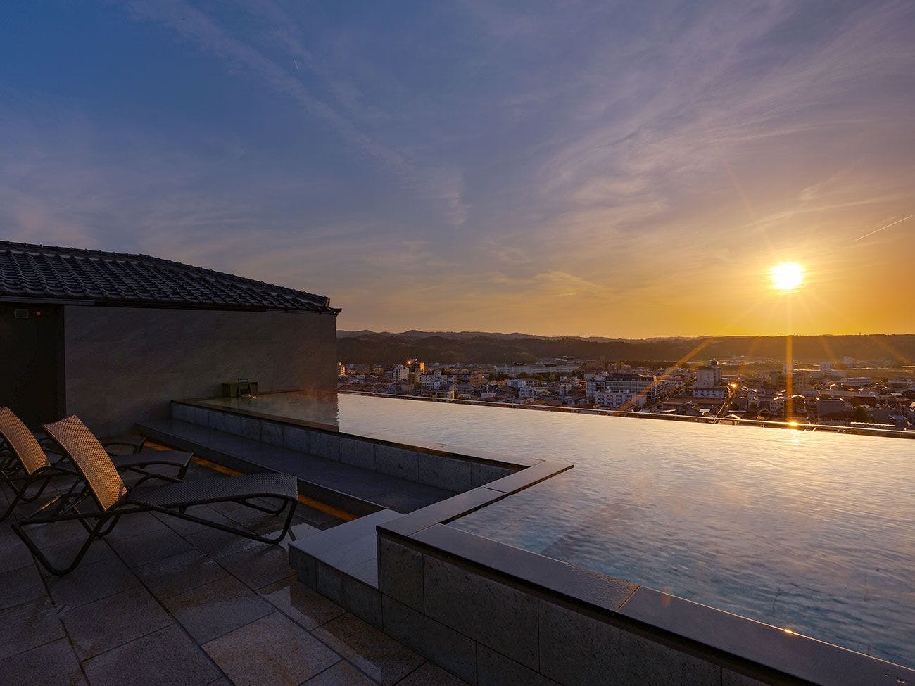 ผ่อนคลายที่ที่พักน้ำพุร้อนพร้อมอ่างอาบน้ำกลางแจ้งบนฟ้าชมพระอาทิตย์ตกและเลานจ์พรีเมียม