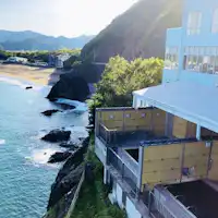 ที่พักที่มีความภาคภูมิใจในอ่างอาบน้ำกลางแจ้งที่มองเห็นมหาสมุทรแปซิฟิก ห้องพักทุกห้องมีวิวทะเล และเมื่อเปิดหน้าต่างจะพบกับทะเลและท้องฟ้าที่สดใส น้ำแร่มีส่วนผสมของโซเดียม-แมกนีเซียมคลอไรด์ ซึ่งมีประสิทธิภาพในการบรรเทาอาการปวดเส้นประสาท ปวดข้อ โรคผิวหนังเรื้อรัง โรคสตรีเรื้อรัง อาการหนาวเย็น และฟื้นฟูความเหนื่อยล้า อาหารเย็นเสิร์ฟในรูปแบบเบนโตะโชคาโดะ และคุณสามารถเพลิดเพลินกับแผนที่เชฟเลือก อาหารเช้าเสิร์ฟในรูปแบบชุดอาหาร