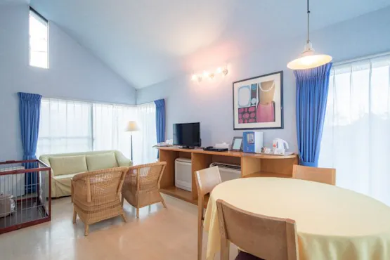 Yahoo!トラベルユー... 14/10/2025We stayed with our dog as a couple. The room showed some signs of age, such as peeling wallpaper, but it was well-cleaned, and even when we moved furniture for the dog, there was nothing unpleasant. Access to the underground bedroom felt like an adventure once we got used to it, almost like exploring a dungeon. The bathroom and washroom were comfortably spacious. Since BBQ grills are only available for those who order ingredients through the accommodation, we opted out due to food allergies in our family. Instead, we enjoyed meals using packed lunches and the mini kitchen provided. With amenities like a refrigerator and microwave available, it was more than sufficient. With windows on two sides of the room, it was bright and perfect for relaxing.If I had to point out any drawbacks: - The frying pan seemed warped (?) and wobbly with some stains; this made cleaning the induction stove challenging.- The dehumidifier in the bedroom was quite noisy.The staff at reception were kind! The location is excellent! Complimentary breakfast was delicious and satisfying! Plus, there's a wood chip dog run! It’s such an amazing accommodation that I almost don’t want to share about it—will definitely visit again!
