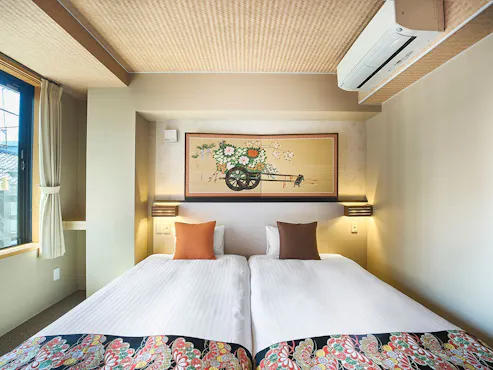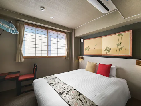 ห้องพักที่ต้อนรับคุณด้วยแสงนุ่มละมุนที่ส่องผ่านบานโชจิ ตกแต่งด้วยกลิ่นอายสไตล์ญี่ปุ่นแบบเกียวโต เตียงใช้ที่นอนแบรนด์ระดับโลก Sealy ท่ามกลางย่านกิออน คุณจะได้พักผ่อนอย่างมีคุณภาพในบรรยากาศแบบญี่ปุ่นอย่างเต็มอิ่ม