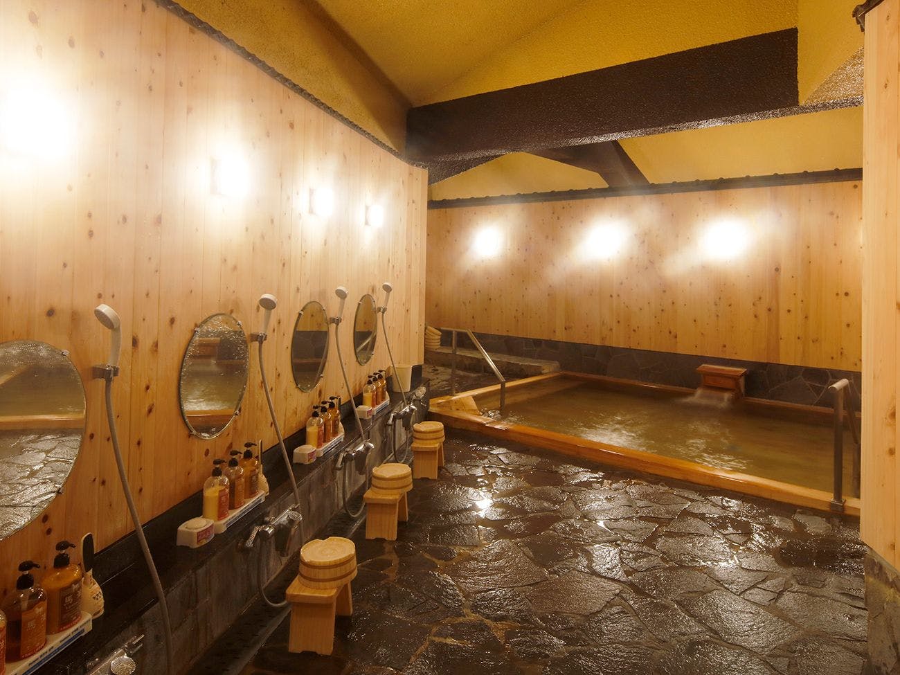 ที่พักของเรามีบริการน้ำพุร้อนหลากหลายรูปแบบให้ท่านได้เพลิดเพลิน ไม่ว่าจะเป็น "ห้องอาบน้ำรวม" และ "บ่อน้ำพุร้อนกลางแจ้ง" ที่สามารถชมวิวลำธารยูนิชิกาวะที่เปลี่ยนแปลงไปตามฤดูกาล, "บ่อไม้ฮิโนกิ" ที่มีกลิ่นหอมอ่อนโยนของไม้ หรือ "บ่อหิน" ที่มีความเป็นธรรมชาติด้วยการจัดวางหินขนาดใหญ่ น้ำพุร้อนของเราเป็นแหล่งต้นกำเนิดที่มีค่า pH 9.3 ซึ่งถือว่าเป็นน้ำพุร้อนด่างชนิดเดียวในเขตคันโต น้ำแร่ด่างนี้เหมาะสำหรับช่วยบรรเทาอาการปวดเส้นประสาท, ปวดกล้ามเนื้อ, ปวดข้อ, อาการไหล่ติด รวมถึงช่วยแก้ปัญหาอาการหนาวง่ายและฟื้นฟูความเหนื่อยล้า นอกจากนี้ยังมีคุณสมบัติละลายเซลล์ผิวเก่า ทำให้ผิวเรียบเนียน จึงได้รับความนิยมในฐานะ "น้ำพุร้อนเพื่อผิวสวยงาม" ท่านจะรู้สึกอบอุ่นและสัมผัสถึงผลดีทุกครั้งที่ลงแช่ เชิญสัมผัสกับประสิทธิภาพของน้ำพุร้อนพร้อมชมทัศนียภาพตามฤดูกาลของยูนิชิกาวะ温泉