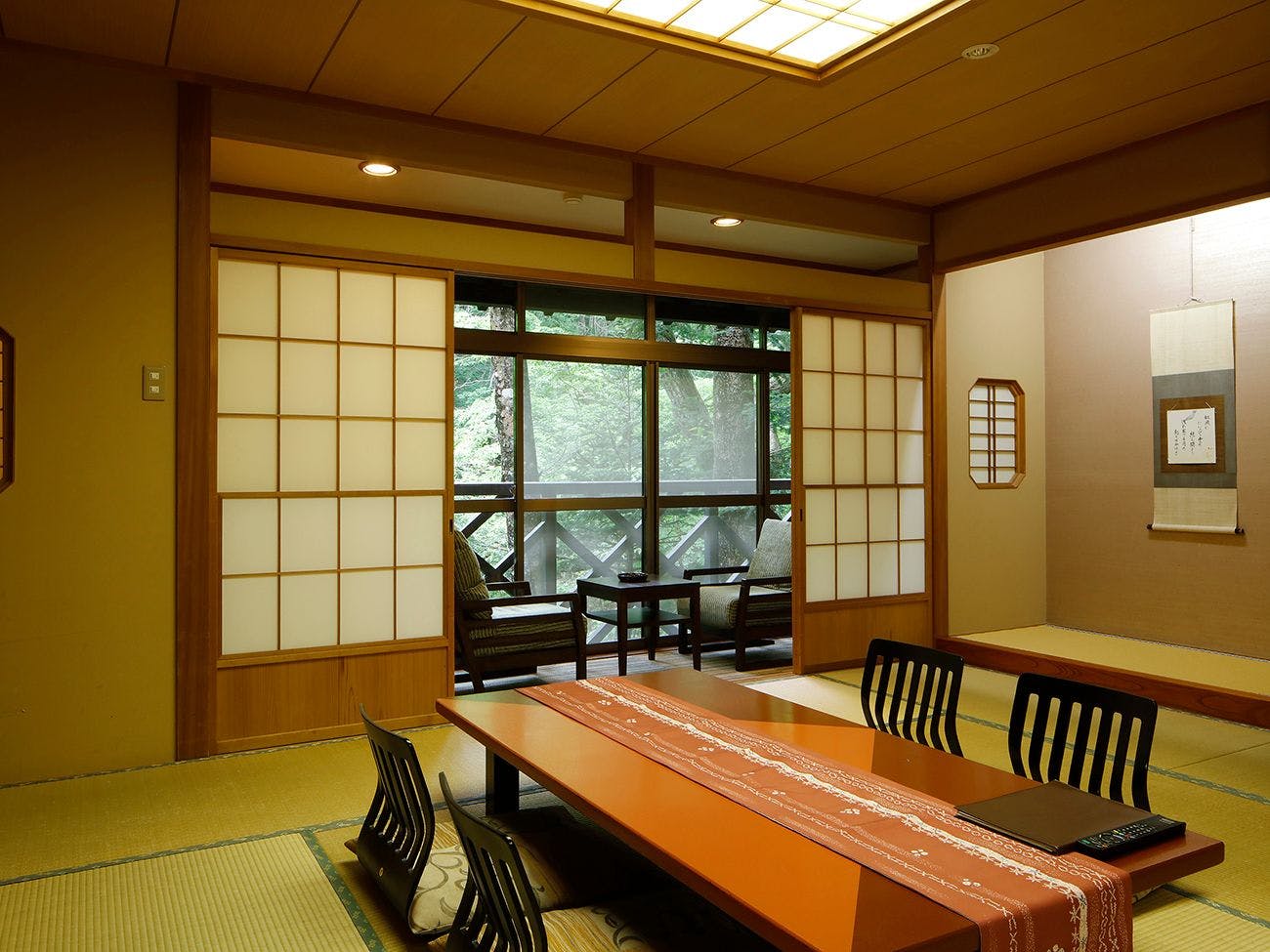 เมื่อเดินผ่านประตูบ้านแบบดั้งเดิม จะพบกับบรรยากาศที่อบอุ่นและสงบใจ ภายในมีบริการแบบรวมทุกอย่าง เช่น บริการต้อนรับ บาร์ยามค่ำคืนสำหรับผู้ใหญ่ และช่วงเวลาผ่อนคลายในเลานจ์ อาหารเน้นเมนูพิเศษ "เฮเคะโอการิบายากิ" ซึ่งเป็นอาหารที่สืบทอดจากยุคเฮเคะ พร้อมรสชาติที่ปรุงอย่างพิถีพิถันตามประเพณี หลังมื้ออาหาร ท่านสามารถเพลิดเพลินกับน้ำพุร้อนหลากหลายรูปแบบ เช่น อ่างกลางแจ้ง อ่างไม้ฮิโนกิ และอ่างหิน พร้อมชมธรรมชาติในแต่ละฤดูผ่านหน้าต่างขนาดใหญ่ในล็อบบี้ เพื่อสัมผัสช่วงเวลาแห่งความผ่อนคลาย
