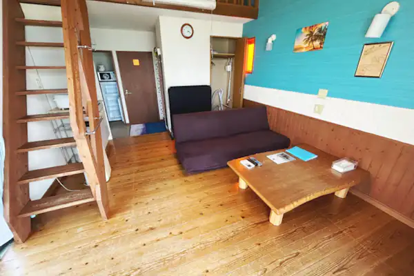 สนามบินอิชิกากิ ขับรถประมาณ 25 นาที บริเวณใกล้เคียงไม่มีร้านสะดวกซื้อหรือซูเปอร์มาร์เก็ต ภายในห้องพักมีตู้เย็น มินิครัว อุปกรณ์ทำอาหาร ตะเกียบ และจานชามต่าง ๆ กรุณาซื้อวัตถุดิบที่จำเป็นจากในตัวเมืองก่อนเดินทางมาถึงค่ะ (*^_^*) ที่จอดรถภายในพื้นที่มีตู้จำหน่ายสินค้าอัตโนมัติให้บริการค่ะ