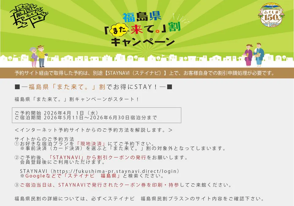 แคมเปญส่วนลด “กลับมาอีกนะ” จังหวัดฟุกุชิมะ