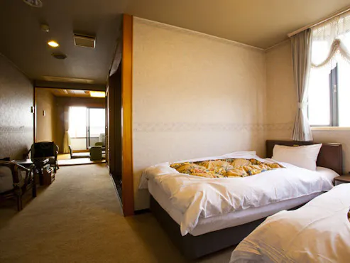 น้ำพุร้อนกลางแจ้งแบบกึ่งเปิดเป็นน้ำพุร้อนธรรมชาติ ในขณะที่อ่างอาบน้ำในร่มเป็นน้ำร้อนที่ต้มตามปกติ ไม่มีการเติมน้ำ คุณสามารถสัมผัสน้ำพุร้อนคลอไรด์ที่มีความเข้มข้นสูง (เค็ม!)