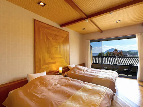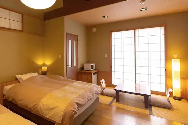 ที่พักแบบแยกส่วนพร้อมน้ำพุร้อนส่วนตัว มีห้องพักทั้งหมด 15 ห้องเป็นแบบตะวันตกหรือแบบญี่ปุ่น-ตะวันตก คุณสามารถใช้เวลาอย่างอิสระโดยไม่ต้องกังวลเรื่องเวลาอาหาร เพลิดเพลินกับอาหารใกล้เคียงหรือพกพาเข้าห้องพักตามสไตล์ที่คุณชื่นชอบ นอกจากนี้ยังมีห้องพักแบบญี่ปุ่น-ตะวันตกพร้อมอ่างน้ำพุร้อนธรรมชาติแบบกึ่งกลางแจ้งที่สามารถใช้ได้ตลอดเวลาที่เข้าพัก และยังมีแผนส่งซูชิสำหรับมื้อเย็นอีกด้วย
