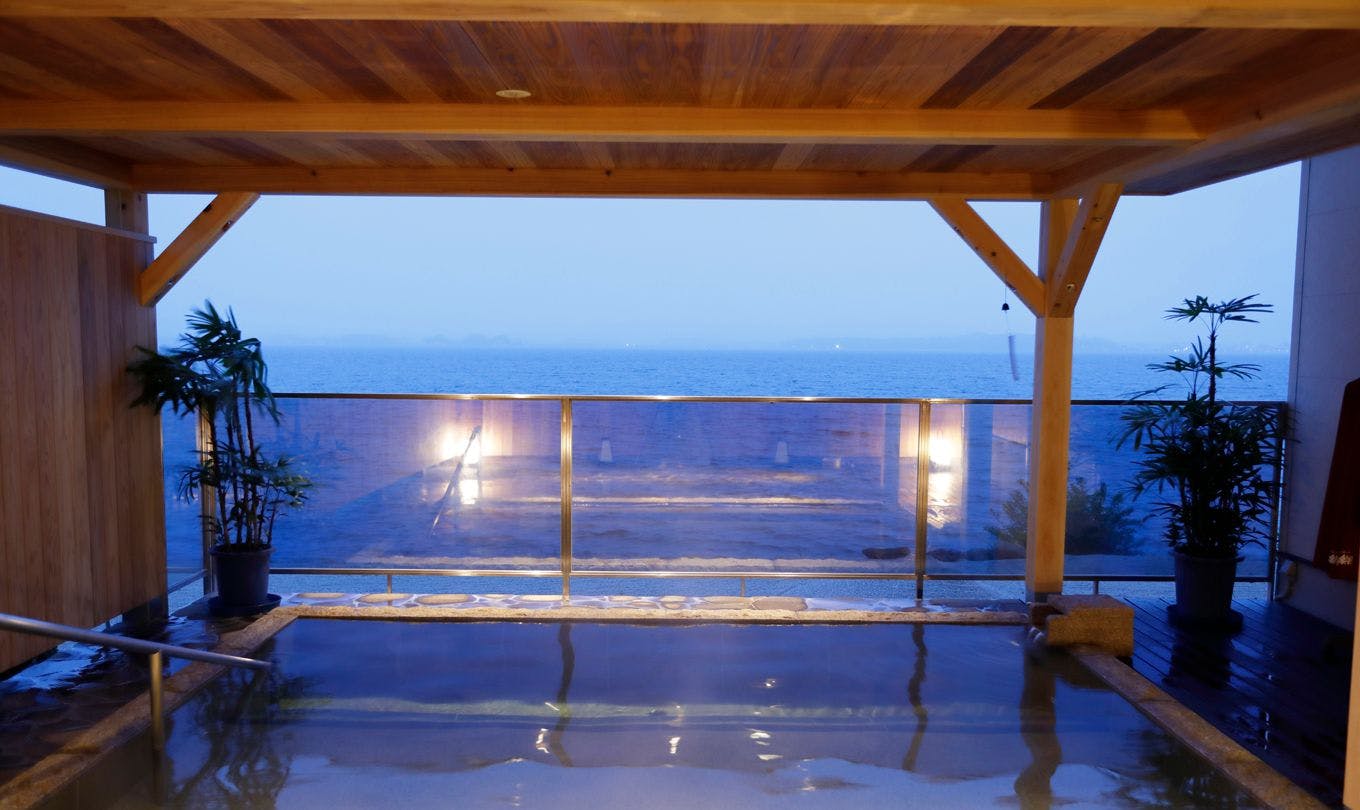 จังหวัดชิมาเนะ/มัตสึเอะน้ำพุร้อนเพื่อผิวสวย วิวทะเลสาบชินจิ และพื้นที่พิเศษที่สามารถพักผ่อนกับสัตว์เลี้ยงได้