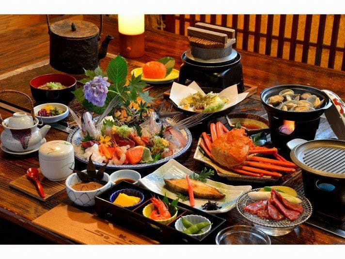 We were drawn to the private open-air bath and in-room dining, and decided to visit!The hospitality was exceptional even before check-in. They were very considerate of my mobility issues, allowing me to relax and enjoy my stay comfortably.The open-air bath is located in a separate building from the accommodation. The washing area has a tatami-like surface, which is gentle on the feet, and you can also enjoy the beautiful scenery! On the second floor of the open-air bath building, there is a spacious lounge area with stunning views as well.For meals, we were served such a variety that it filled up the entire table! I was so focused on cracking crab that some grilled dishes and hot pot cooled down before I could eat them—what a shame! Everything was delicious and enjoyable.It was such an amazing experience that I want more people to know about this place!