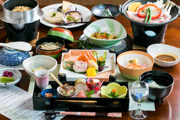 ที่พักที่มีน้ำพุร้อนบิชูฮาระที่มีประวัติศาสตร์ยาวนานถึง 1,300 ปี ประวัติศาสตร์ของน้ำพุร้อนเก่าแก่ย้อนกลับไปถึงยุคนารา และในปีโชวะที่ 58 (1983) ได้รับการกำหนดให้เป็นสถานที่พักฟื้นสุขภาพแห่งชาติ ท่านสามารถสัมผัสกับประวัติศาสตร์ที่สืบทอดมาอย่างยาวนาน และเพลิดเพลินกับช่วงเวลาแห่งการผ่อนคลายที่เต็มไปด้วยจิตวิญญาณแห่งการต้อนรับ ถูกโอบล้อมด้วยไอน้ำอันอ่อนโยน สัมผัสถึงการเปลี่ยนแปลงของฤดูกาล และเพลิดเพลินกับความอุดมสมบูรณ์ของธรรมชาติอย่างเต็มที่ เราขอนำเสนออาหารชุดตามฤดูกาลที่มีสีสันสดใส ตั้งแต่เมนูดั้งเดิมไปจนถึงเมนูสร้างสรรค์ โดยใช้วัตถุดิบท้องถิ่นตามฤดูกาล ภายใต้ธีม "ความงามและสุขภาพ"