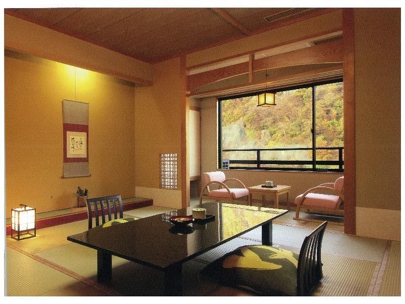 เรียวกังเก่าแก่ที่ก่อตั้งขึ้นในปีไทโชที่สิบ สร้างบรรยากาศเทศกาลและน้ำพุร้อนขึ้นใหม่ เพิ่มความสนุกสนานในการเดินทางด้วยการแสดงกลองเทศกาลที่มีชื่อเสียงทั่วประเทศและกิจกรรมค้นหาสมบัติ มีห้องพักที่มีเอกลักษณ์ เช่น ห้องสำหรับผู้หญิงและห้องสไตล์ญี่ปุ่นพร้อมระเบียงกว้างปูพื้นไม้แบบเตาผิง กล่าวกันว่าการแช่น้ำพุร้อนช่วยให้คุณระลึกถึงสมบัติอันมีค่า ขัดเกลา ทำความสะอาด และรักษาไว้ ซึ่งสมบัตินั้นจะนำความสุขมาให้ อาหารเรียวกังจะทำให้คุณรู้สึกอิ่มเอมใจอย่างแน่นอน