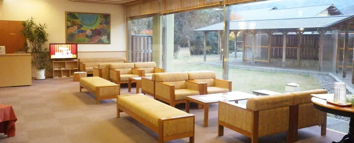 โปรดผ่อนคลายอย่างสบายใจพร้อมชมทางเดินเชื่อมไปยังอาคารน้ำพุร้อน เรามีพื้นที่นั่งพักให้บริการในหลายจุด เช่น ล็อบบี้ ภายในลิฟต์ และหน้าห้องอาบน้ำ นอกจากนี้ยังมีห้องน้ำสำหรับผู้ใช้รถเข็นโดยเฉพาะ
