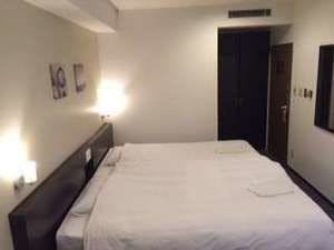 ห้องเดี่ยวที่กว้างขวาง ทันสมัย และเรียบง่าย เตียงขนาดดับเบิลให้ความสะดวกสบายอย่างกว้างขวาง