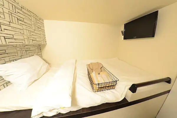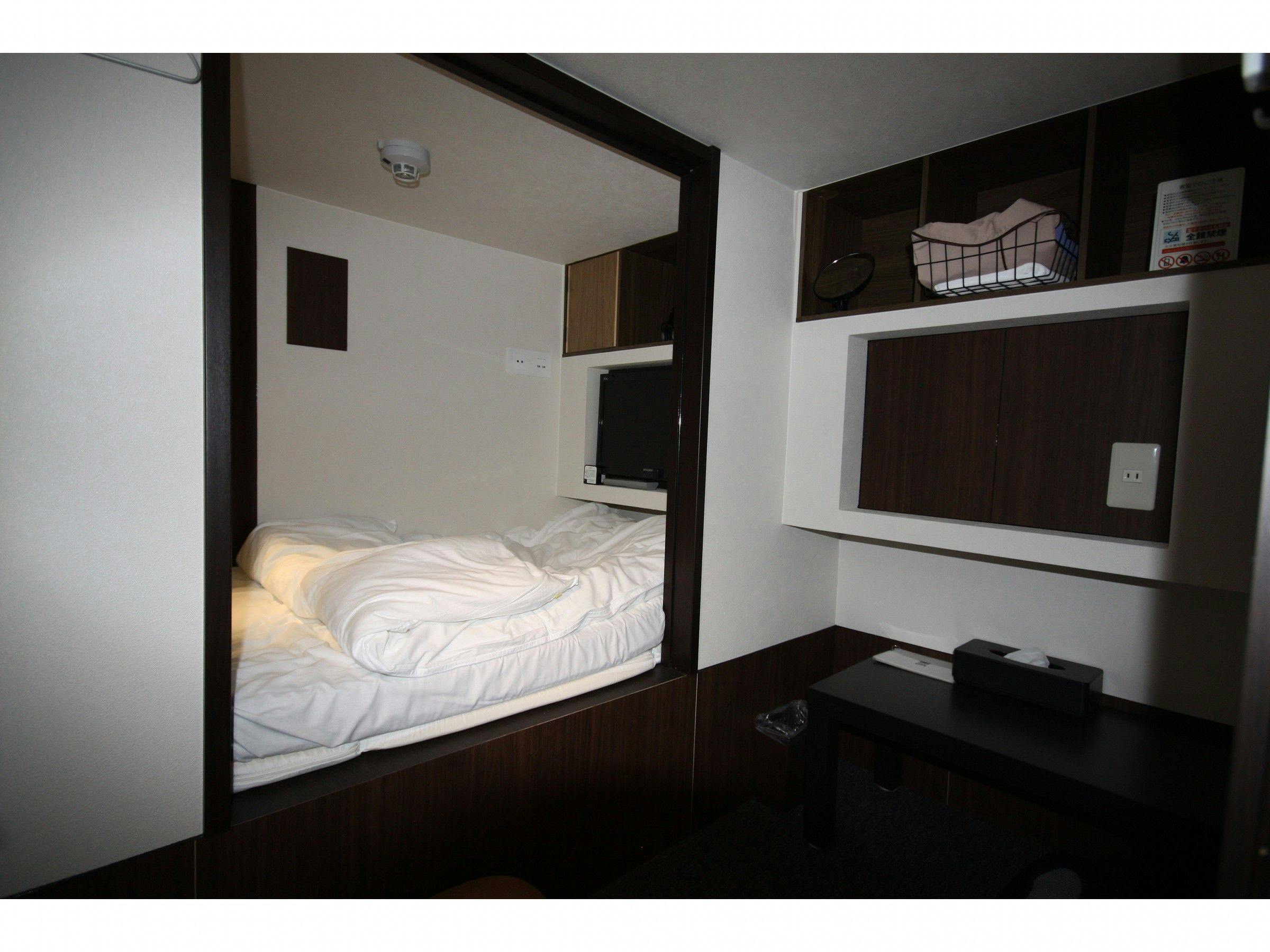 I use this place when I’ve been drinking in Okayama so I can stay overnight without worrying about the last train. A taxi home would cost nearly 20,000 yen, so 3,600 yen is a great deal. Check-in is at the Square Hotel reception. Parking is also free if you can park in the Square Hotel multi-story garage (note: no 3-number vehicles). The shower and toilet are shared, but I’m just sleeping it off, so it doesn’t bother me.
