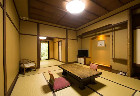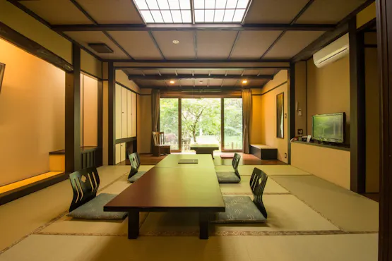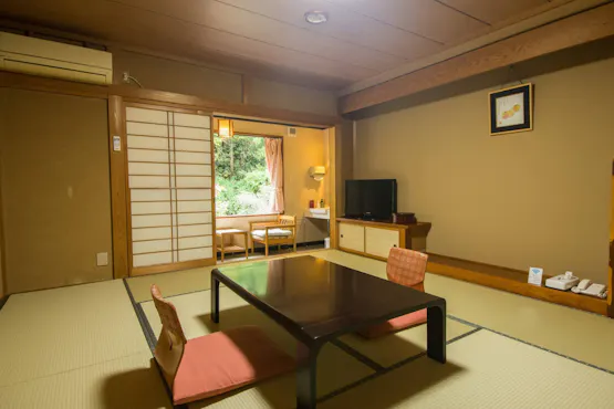 ที่พักในหุบเขาที่มีน้ำพุร้อนสองประเภทและอาหารที่ใช้วัตถุดิบสดใหม่จากทะเลและวัตถุดิบตามฤดูกาล ห้องพักสไตล์ญี่ปุ่นที่กว้างขวางมีโต๊ะอุ่นในฤดูหนาวและอ่างอาบน้ำกึ่งกลางแจ้งที่ทำจากไม้ฮิโนกิ เพลิดเพลินกับน้ำพุร้อนในห้องพักพิเศษที่มีแหล่งน้ำพุร้อนของตัวเองพร้อมชมการเปลี่ยนแปลงของฤดูกาล นอกจากนี้ อาหารชาบูชาบูปลาหมึกสดยังมีรสชาติที่เป็นเอกลักษณ์ด้วยเนื้อสัมผัสที่นุ่มและความกรุบกรอบของหนวดปลาหมึก