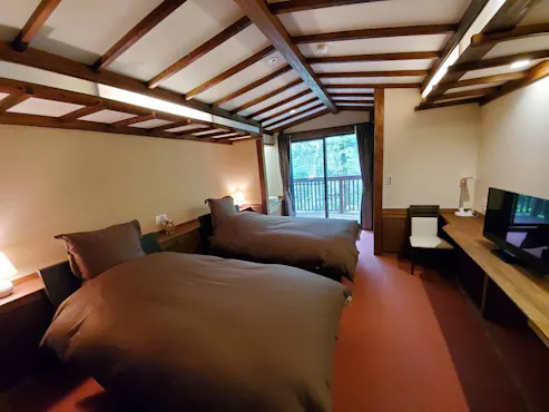 จังหวัดโทะจิกิ/เมืองนิกโก้ที่พักในธรรมชาติที่มีน้ำพุร้อนกำมะถัน 100% แบบไหลผ่านโดยไม่ใช้ร่วมกัน บรรยากาศเหมือนบ้านพักตากอากาศ จำกัดเพียง 4 กลุ่มต่อวัน
