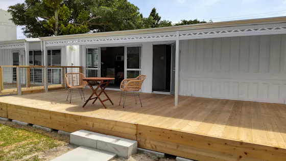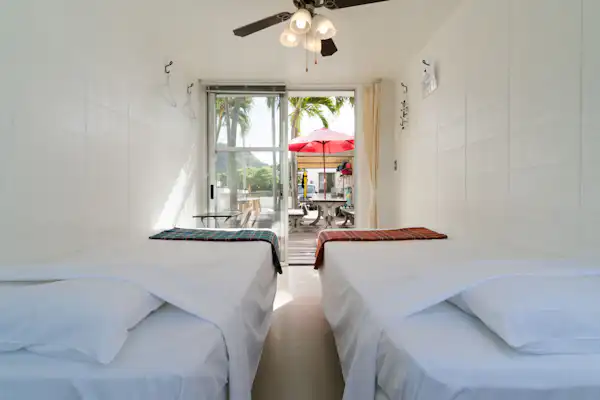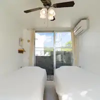 ใช้เวลา 1 ชั่วโมงโดยเรือเร็วจากนาฮะ ที่พักนี้ตั้งอยู่บนเกาะเล็ก ๆ "เกาะอาคา" ในอุทยานแห่งชาติหมู่เกาะเครามะ ห่างจากทะเลเพียง 30 วินาทีโดยการเดิน ห้องพักมีสไตล์เรียบง่ายโดยใช้สีขาวเป็นหลัก ห้องอาบน้ำและห้องสุขาเป็นแบบใช้ร่วมกัน แต่มีการดูแลความสะอาดอย่างดี และสามารถใช้งานได้ก่อนเช็คอินและหลังเช็คเอาท์